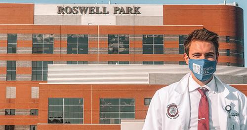 Jordan Scott in front of Roswell Park Comprehensive Cancer Center in Buffalo, NY