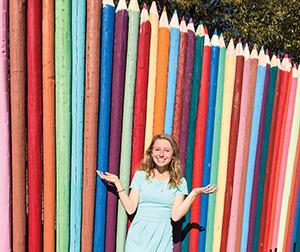 Emily in front of giant colored pencils
